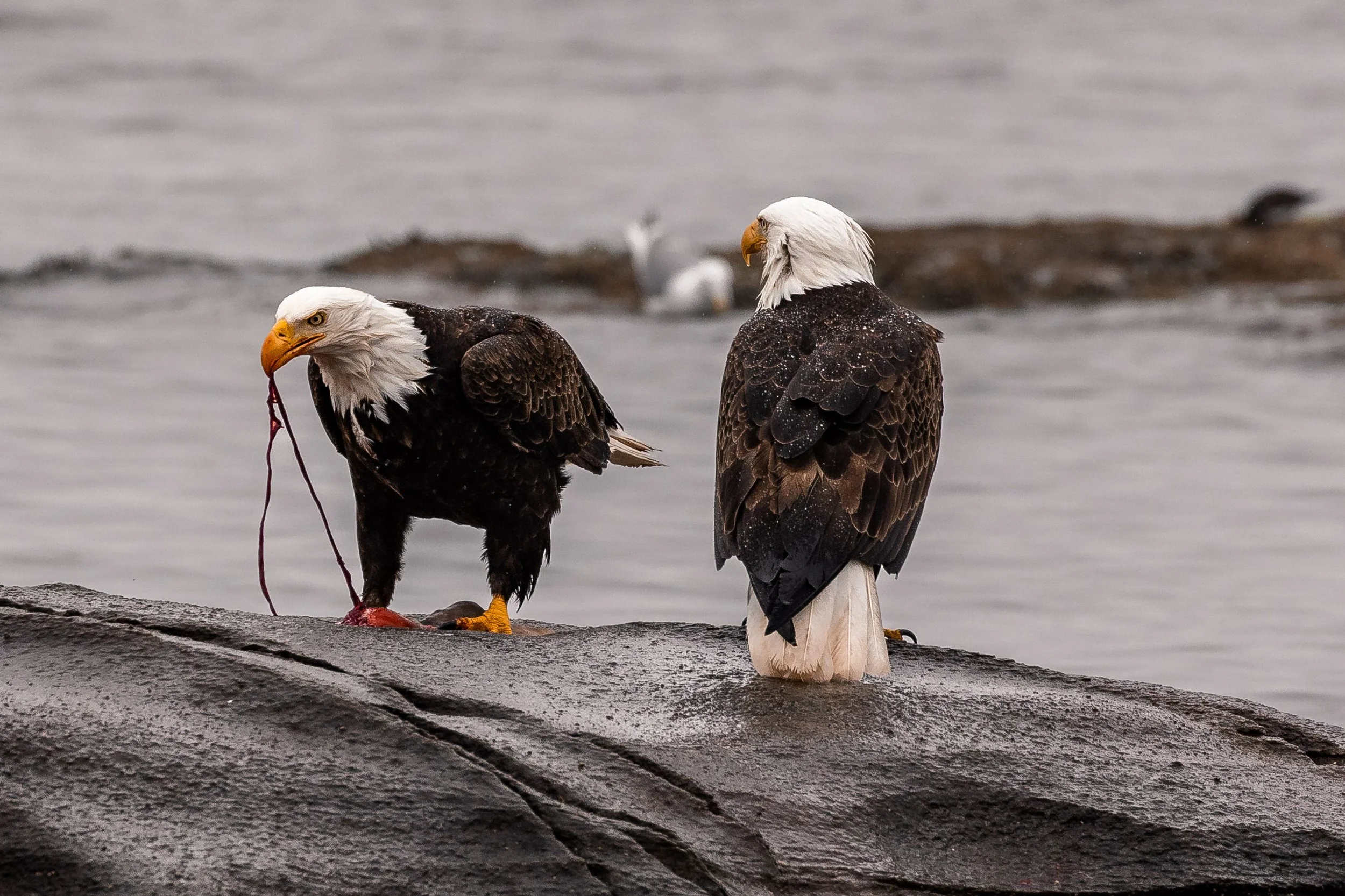 Bald Eagles feeding.