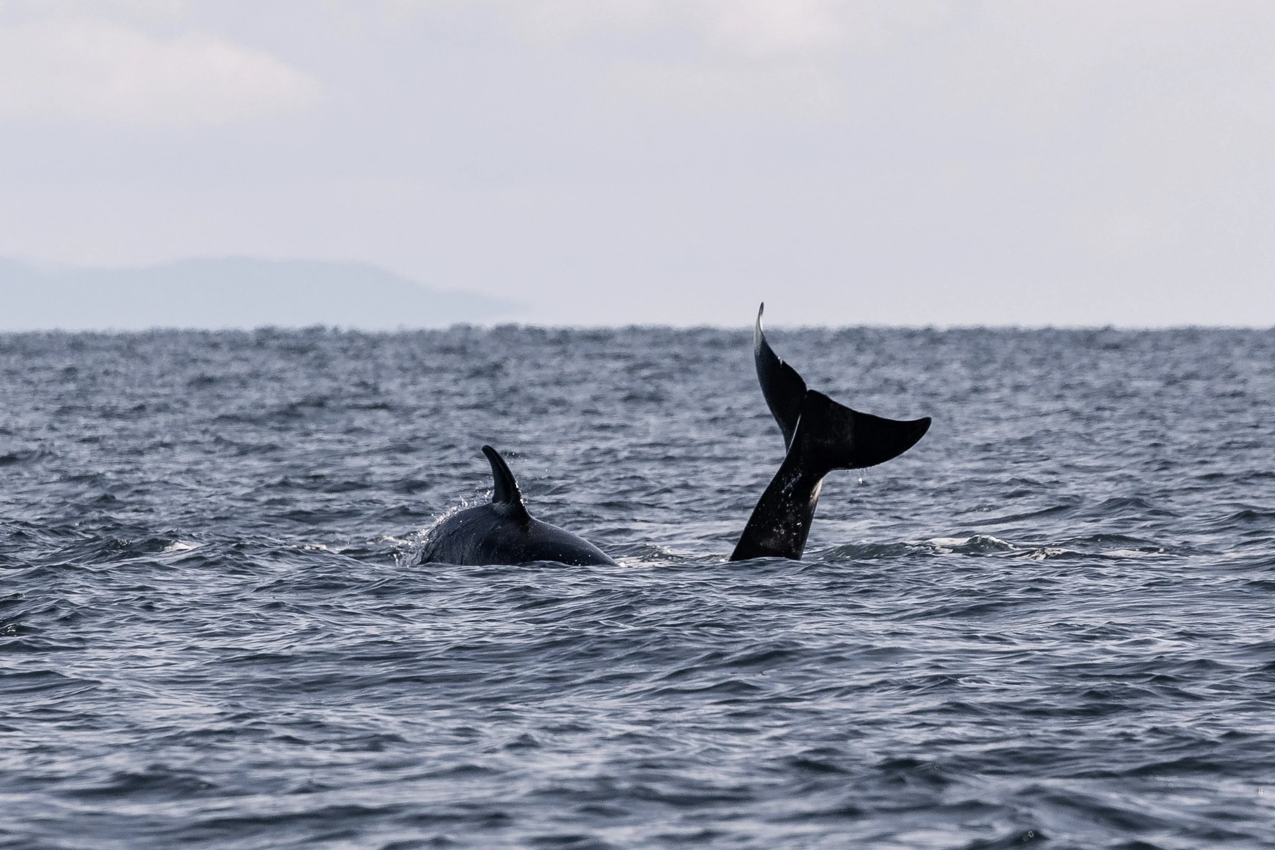 It wasn’t long until we spotted them: splashes and dorsal fins in the distance. We had found the whales!