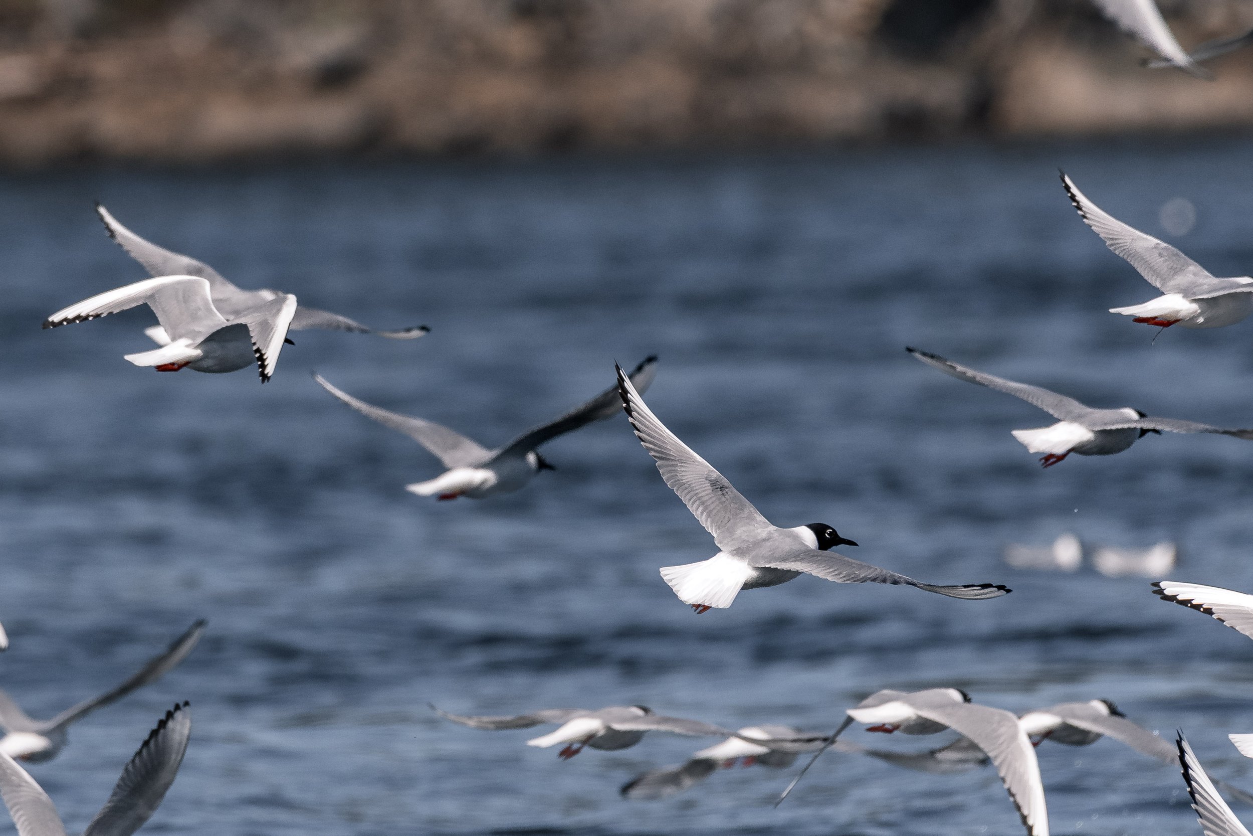 Bonaparte’s gulls soaring past. Photo by Evan Hessels.