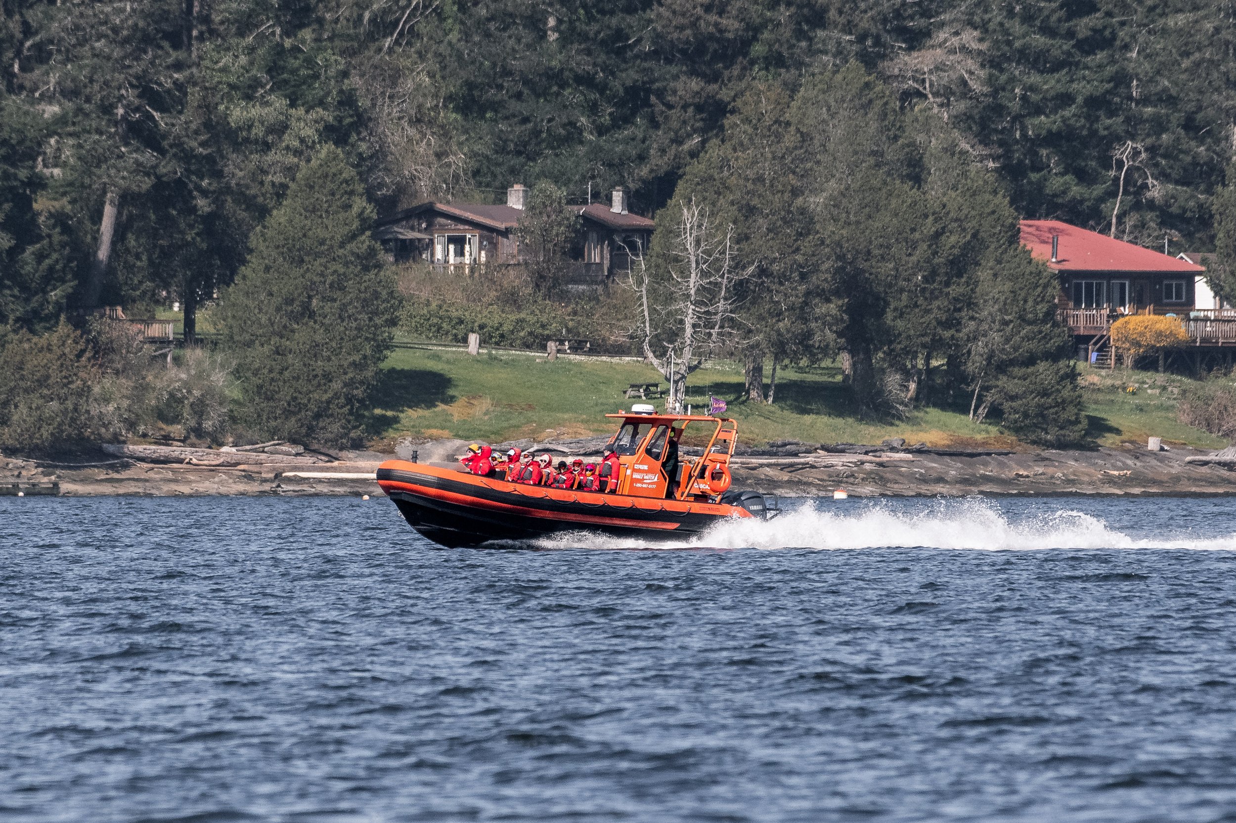 Cascadia speeding south through the Stuart Channel in search of whales. Photo by Evan Hessels.
