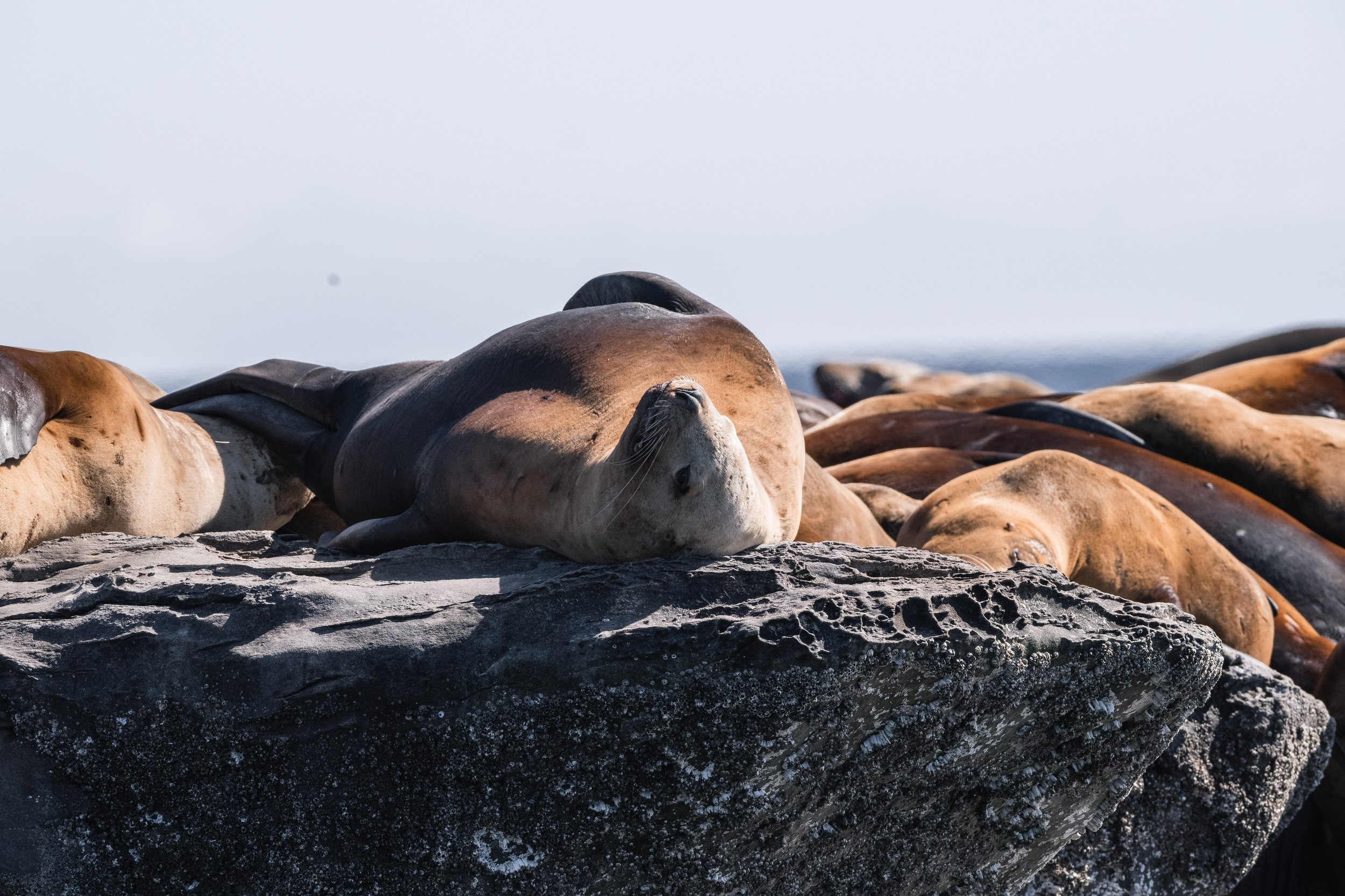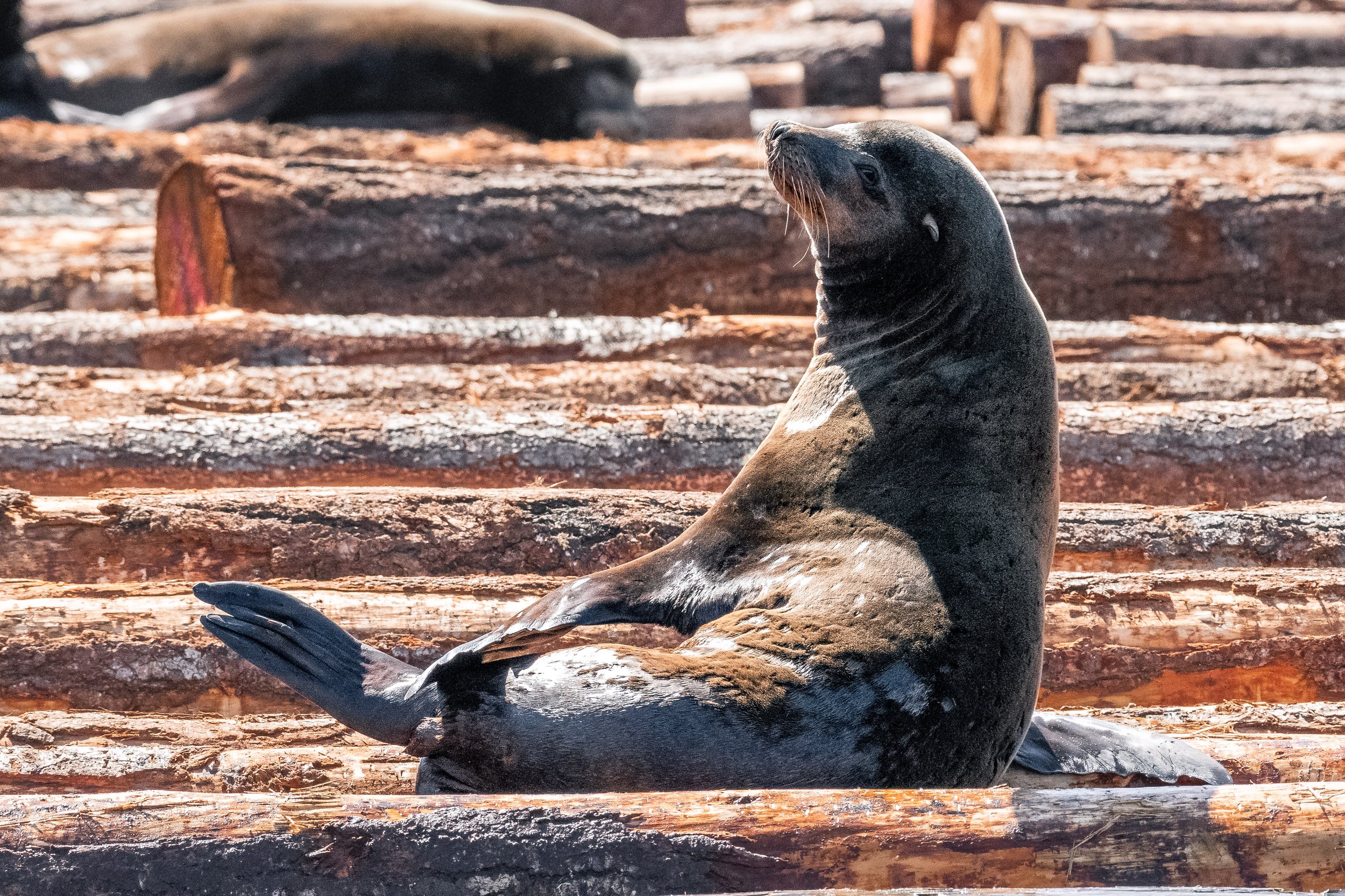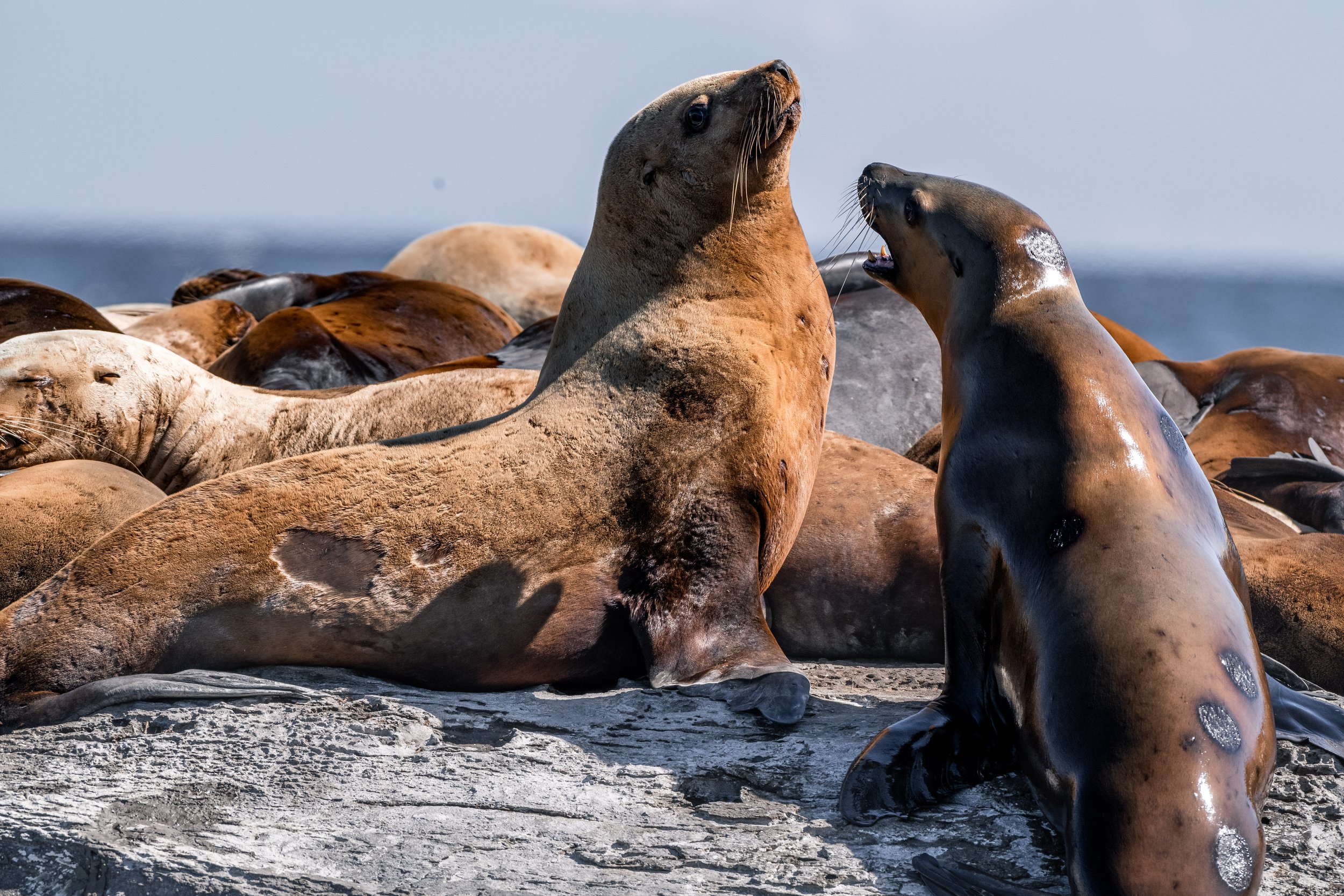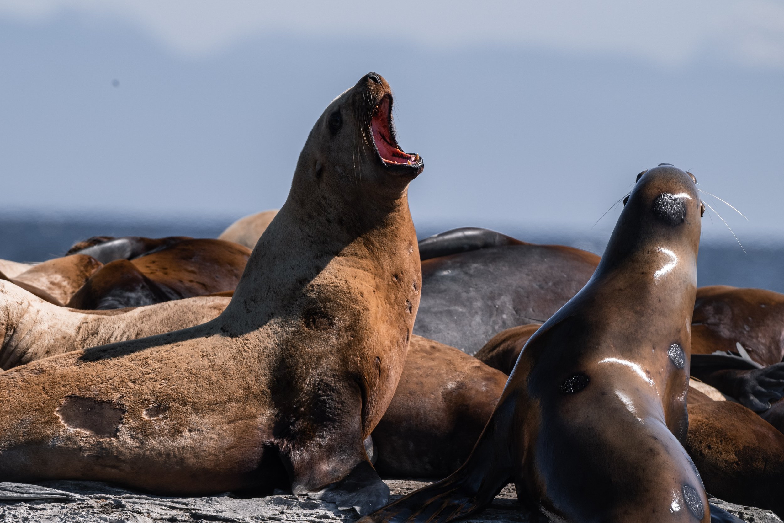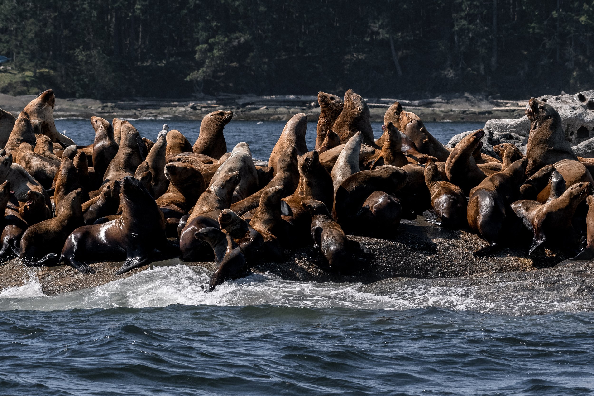 Haul-outs nearby were busy with both California Sea Lion and Steller Sea Lion. The contrast between the two species is always fascinating to observe. California Sea Lions tend to be more agile and vocal, while Stellers, the largest of the sea lions, carry a noticeable bulk and presence. Both play important roles in the marine ecosystem and are frequent targets for transient orca, adding another layer to the region's predator-prey dynamics.