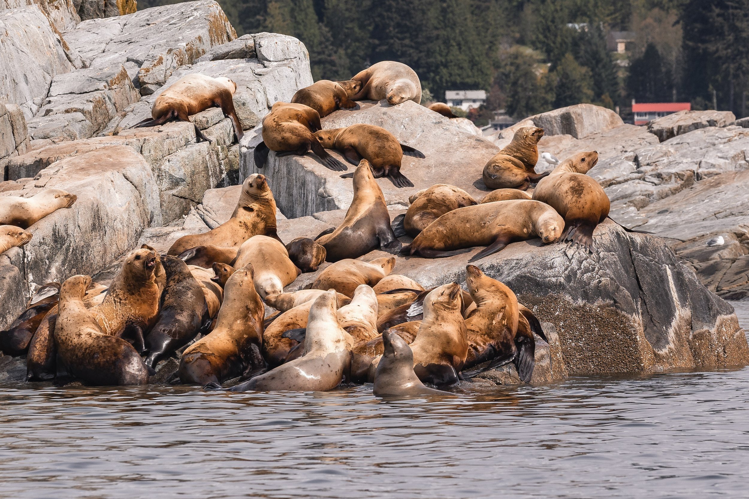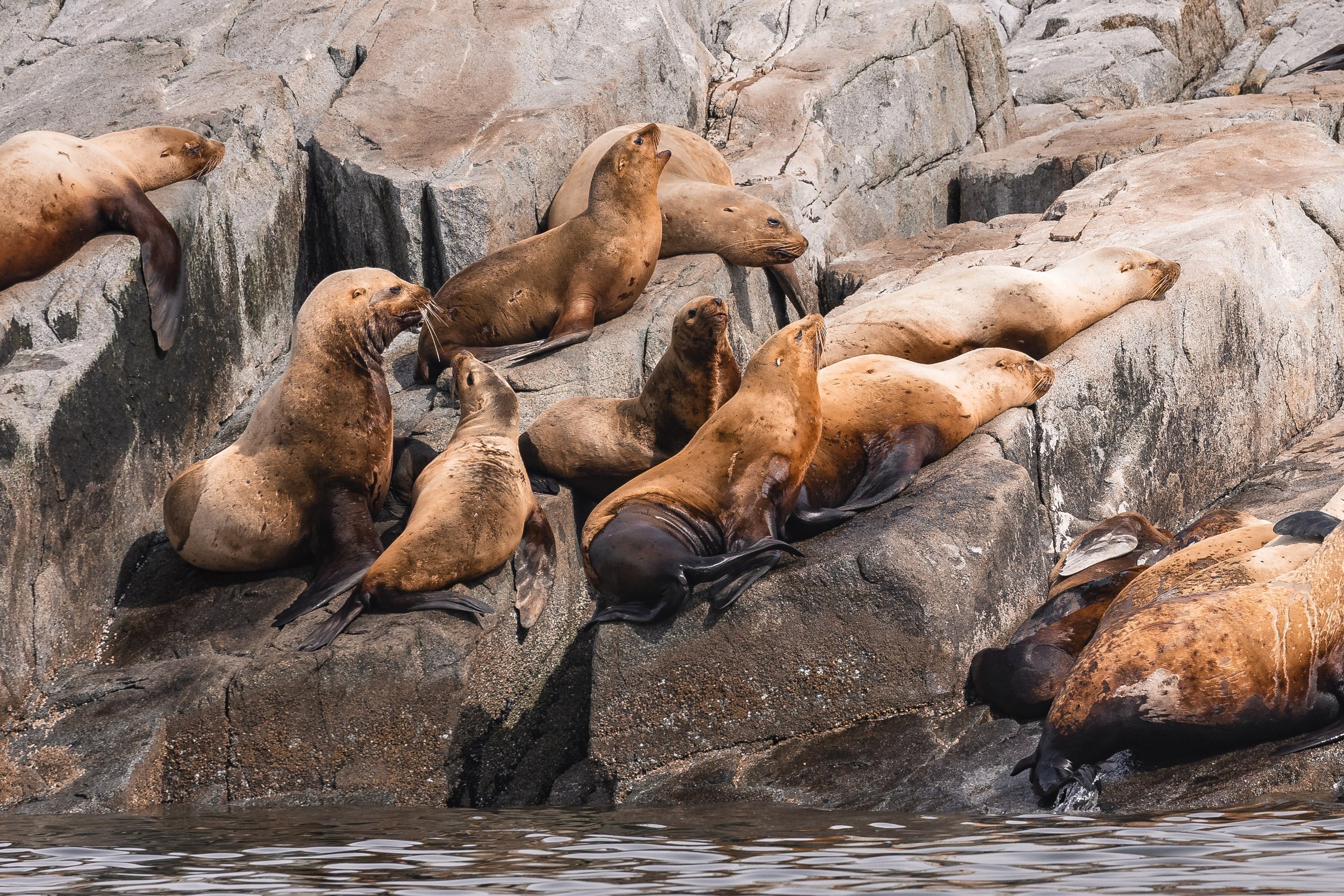 Steller Sea Lions, resting, roaring, and yawning the day away.