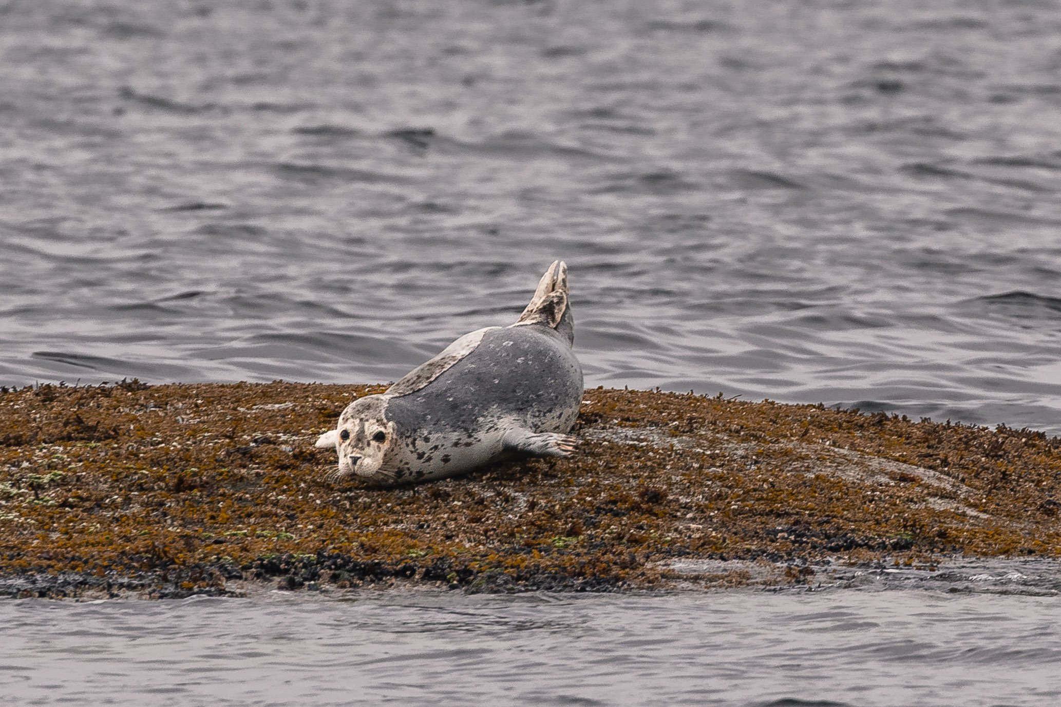 It moved with a distinct, rolling motion as it shifted along the rock, a reminder of how different these animals are from their sea lion relatives. Harbour seals cannot rotate their hind flippers beneath them, so instead they pull themselves forward, a movement often described as galumphing, or to move clumsily. The word comes from the classic novel Through the Looking-Glass, the sequel to Alice in Wonderland, both written by Lewis Carroll.