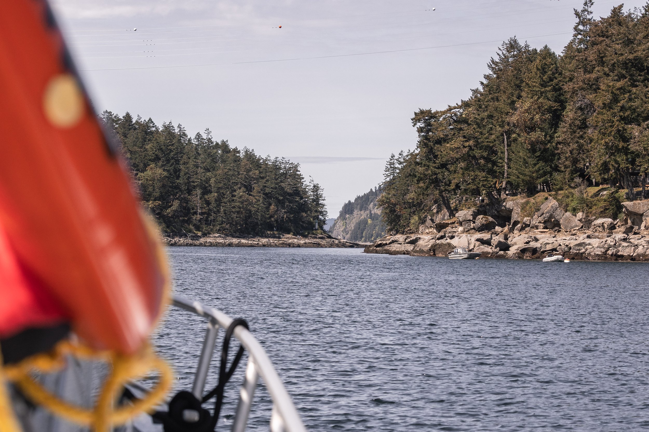 Once the celebrations were done, the T124Ds and T071Bs continued travelling along, and soon after we did the same. Once more we headed out, aiming back towards Porlier Pass once more. Before entering the pass though, we made a quick stop to a small rocky island outside the pass.