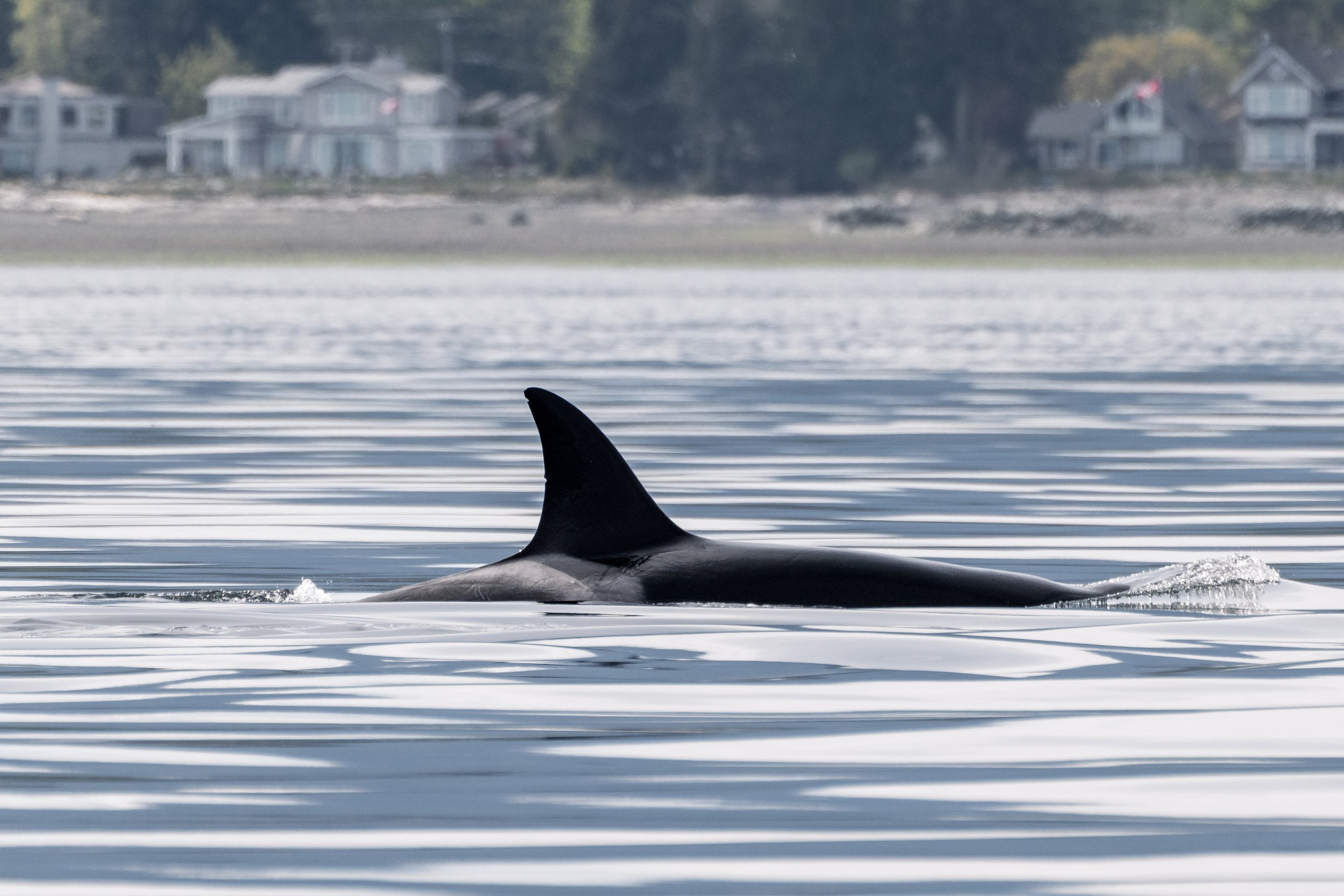 That was the case today, when we got told of a group of whales travelling in Northwest Bay, only about 40 minutes north of Nanaimo. Shore-bsed reports like this can sometimes be tricky, since there is an infinate number of directions for them to choose from after leaving a bay such as this, but we figured it was worth a chance searching there anyways. These efforts paid off, since after travelling along the coastline, doing some zigging and zagging to cover more ground as we searched, the distinct black dorsal fins of the whales caught Captain Josephs eye. We had found the whales!