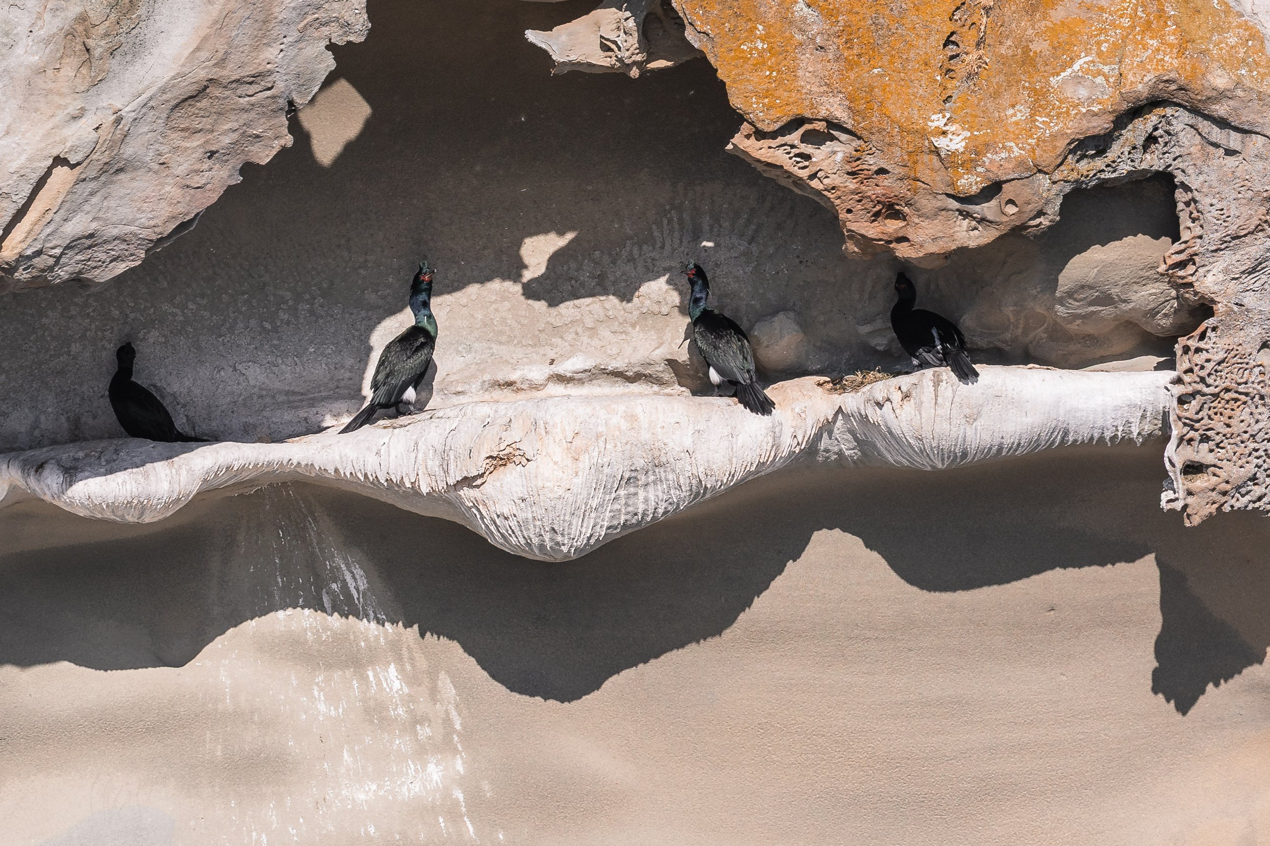 Pelagic Cormorants perched on the edge of the cliff. Photo by Vanessa Vereschahen.