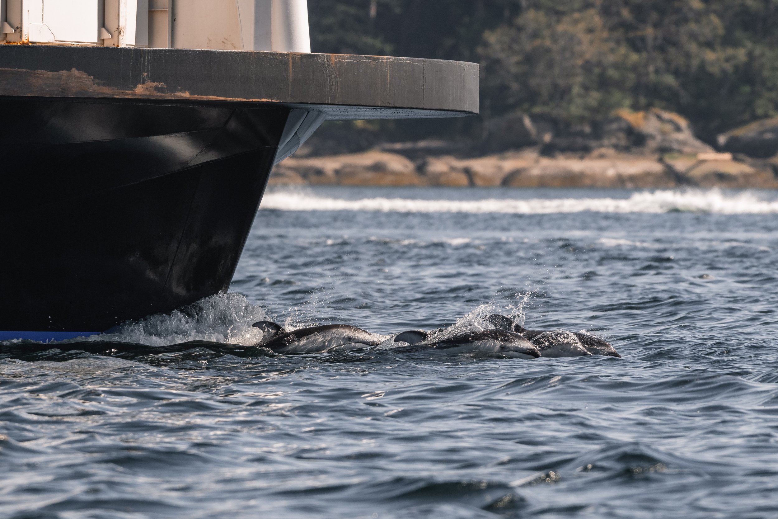 Pacific white-sided dolphins bow-riding. Photo by Aly Kohlman.