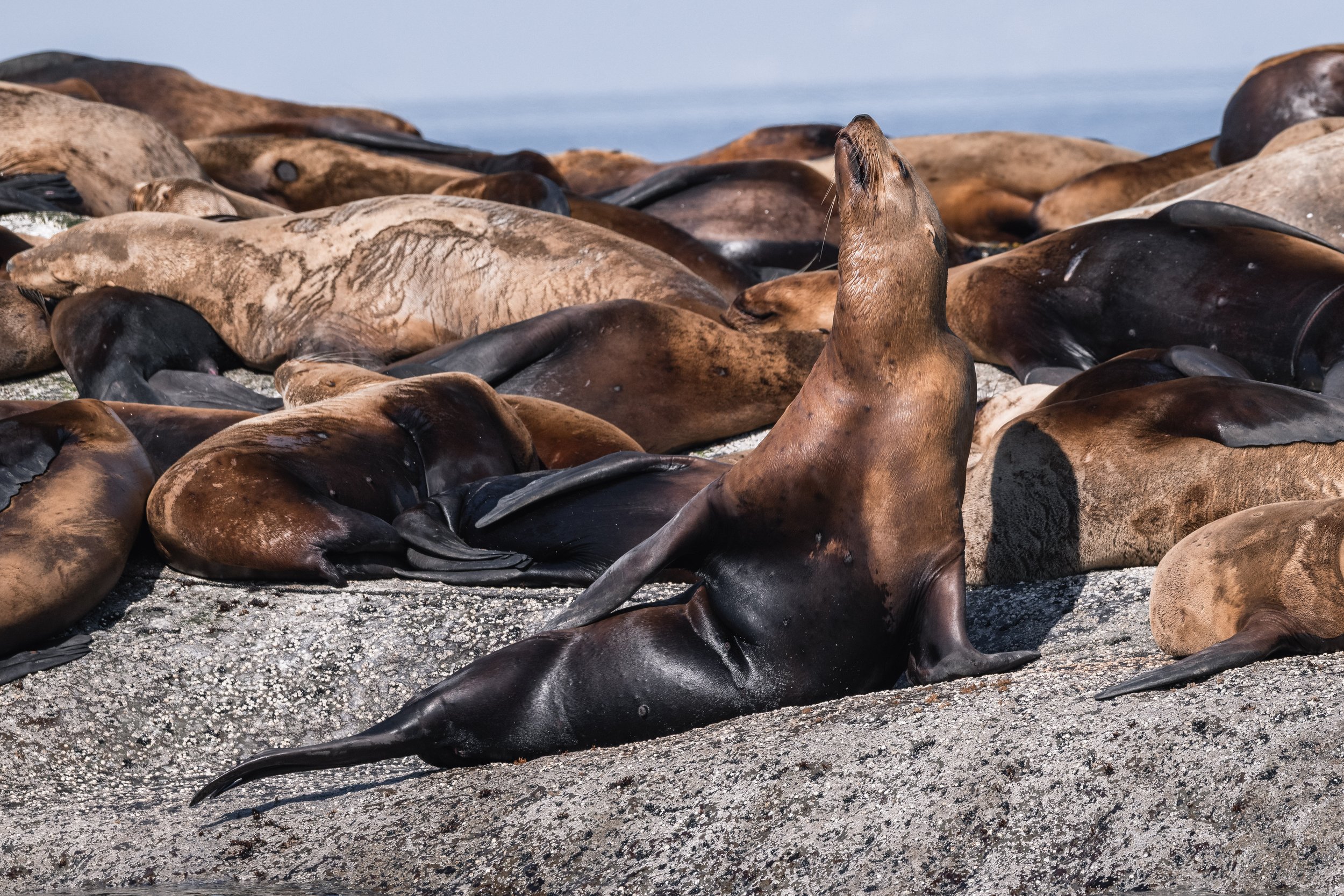 A sealion scratches on top of the rocks. Photo by Aly Kohlman.