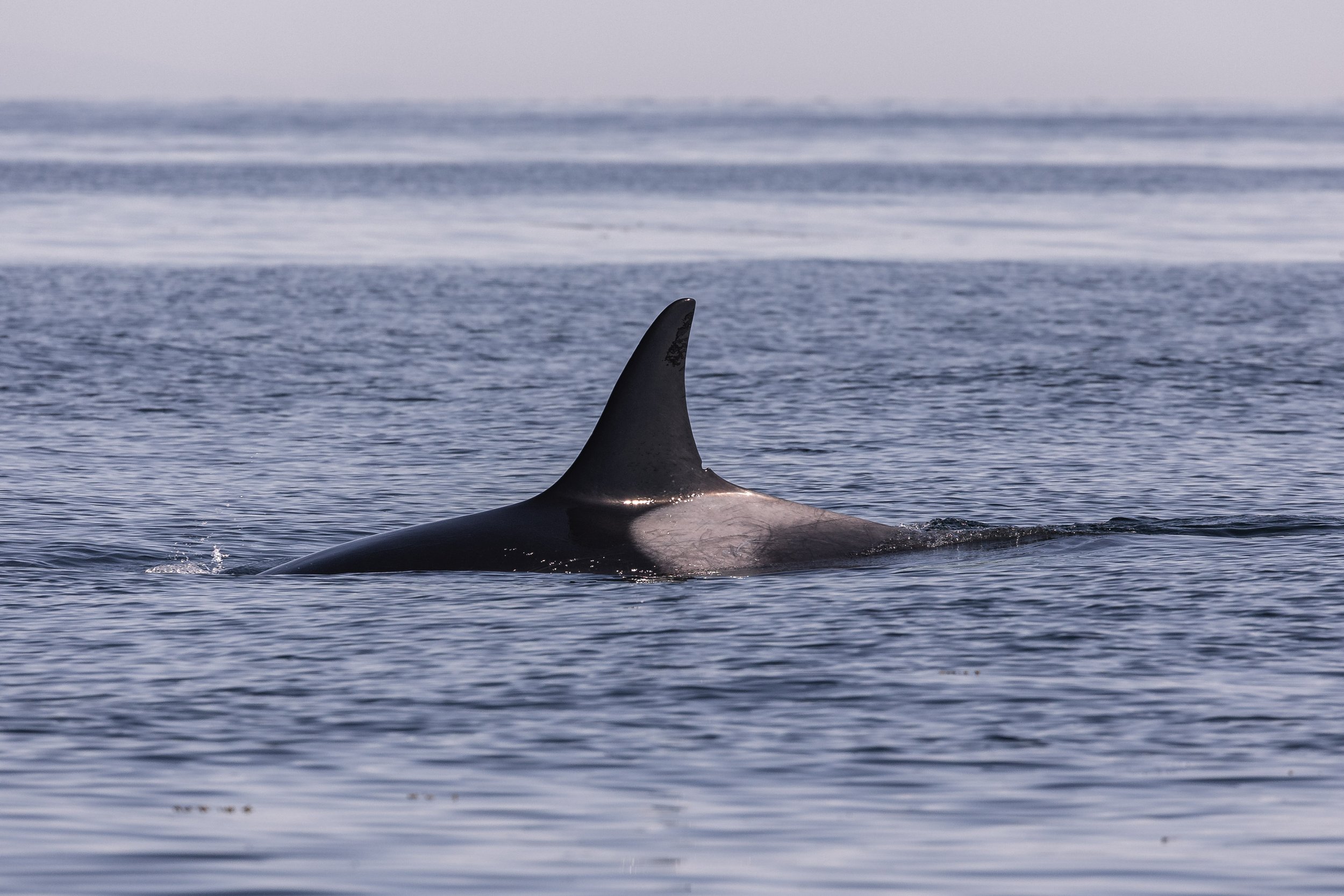 T049A2 Jude with his distinctly hooked dorsal fin. Photo by Aly Kohlman.