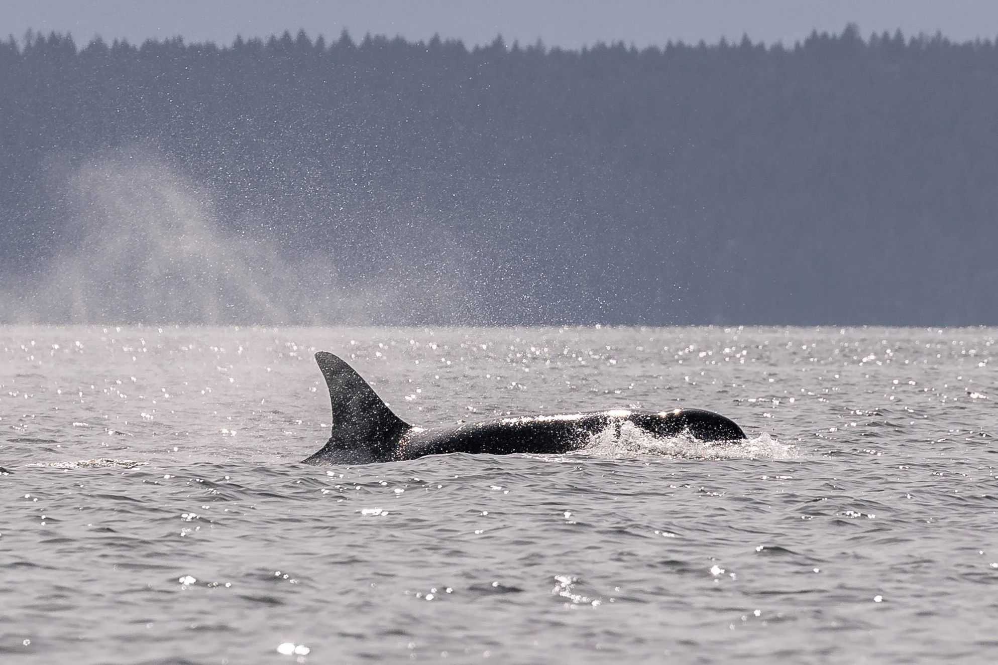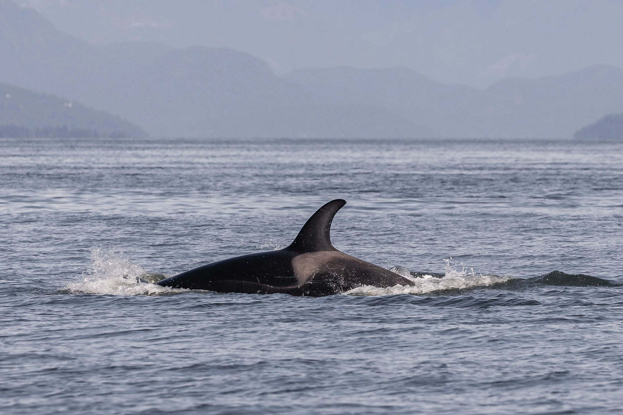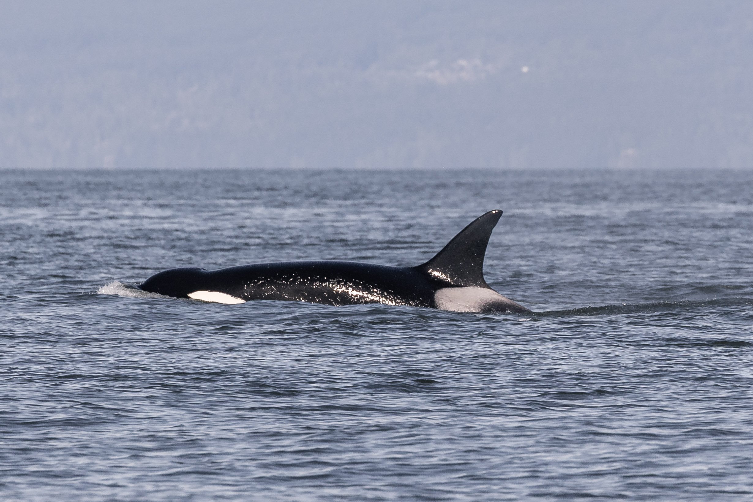 T065B3 Rook, with an impressive dorsal cape visible - a trait that presents rarely in the Transient ecotype. Photo by Jordan Robinson.
