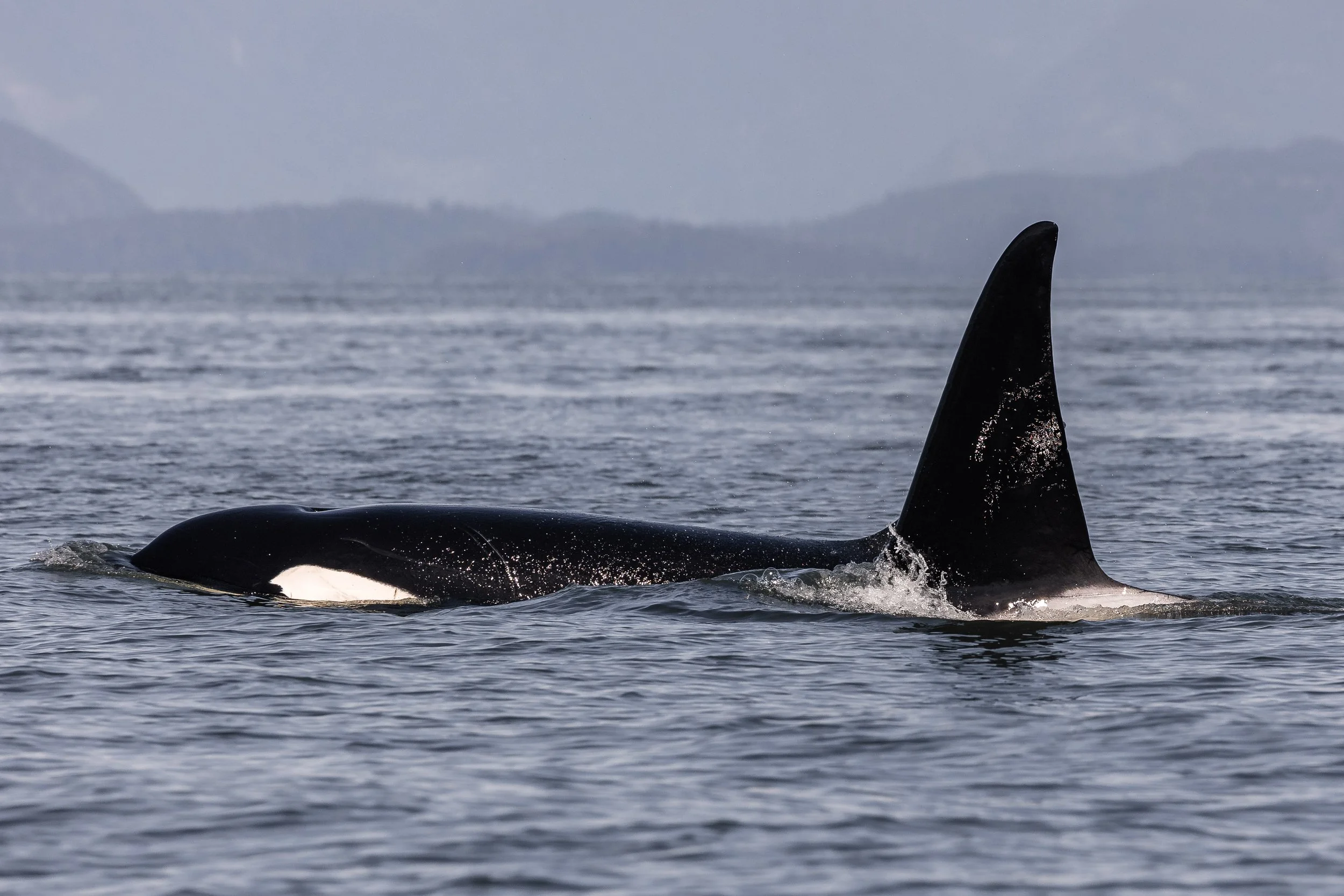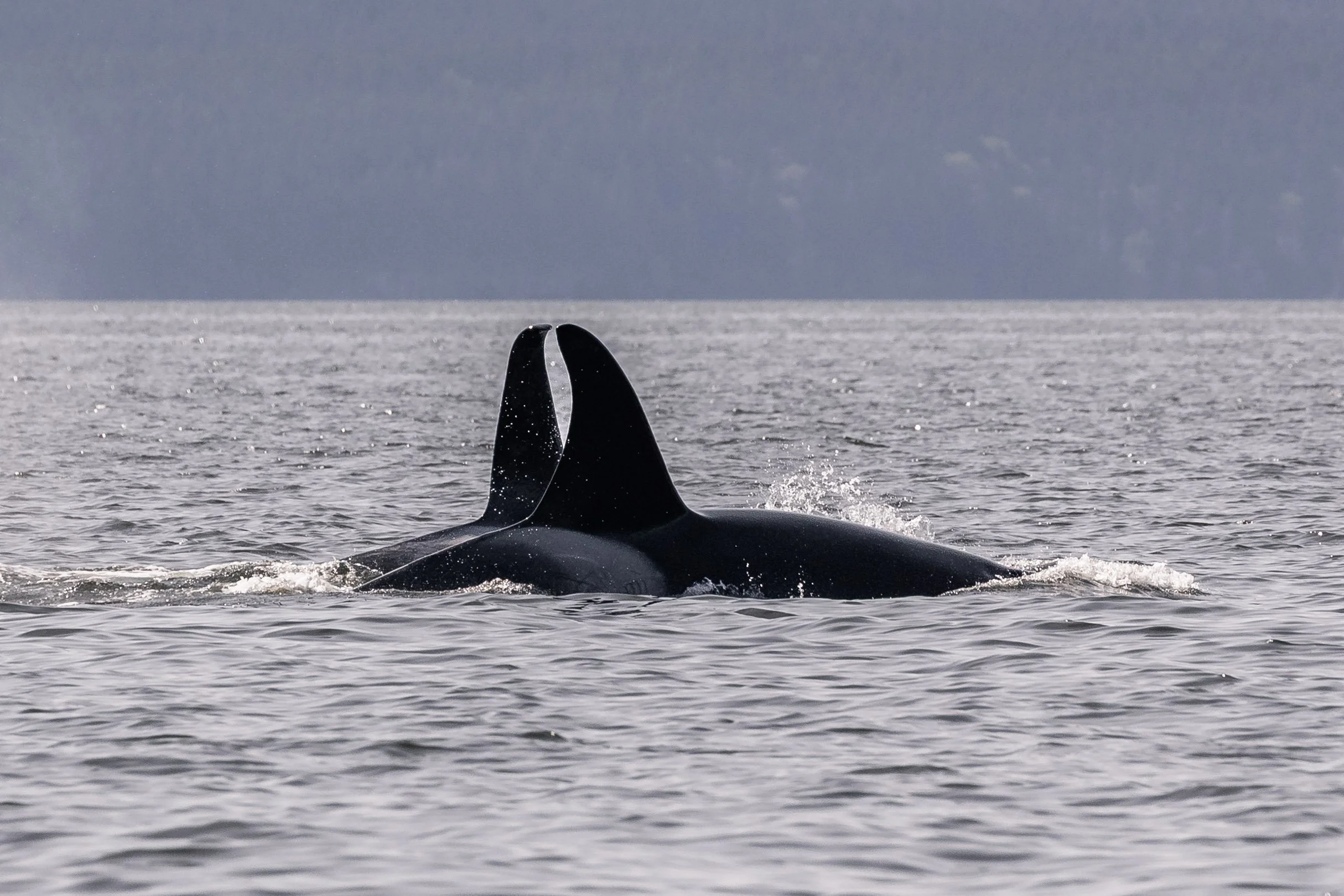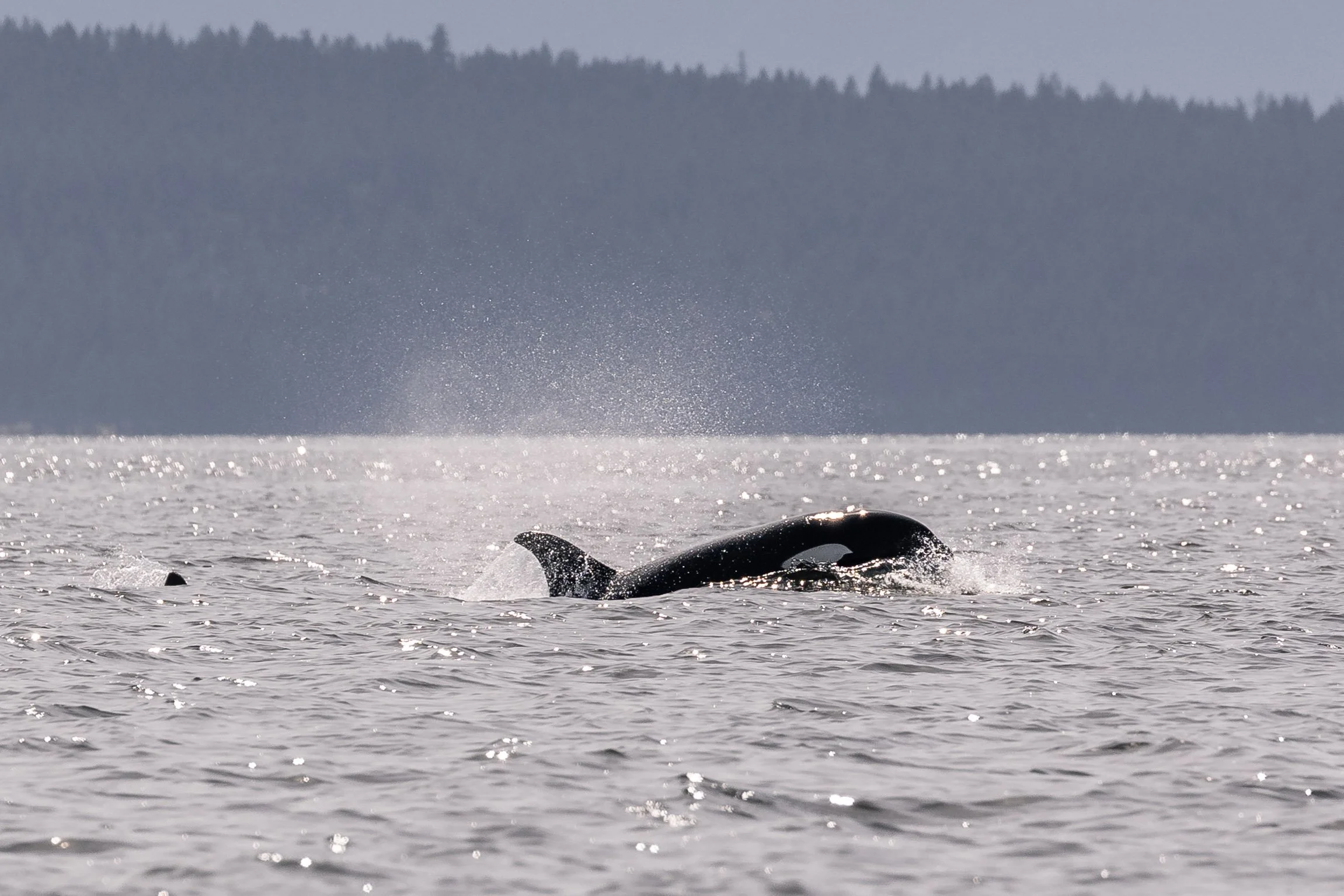 T065B3 Rook, with an impressive dorsal cape visible - a trait that presents rarely in the Transient ecotype. Photo by Jordan Robinson.